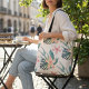 Peach e Green Tropical Tote Bag Este é o perfeito saco de tartes florais tropicais para começar as celebrações. Este design apresenta um padrão floral tropical verde e pêssego em ambos os lados do saco. Visite nosso compro para coordenar acessórios.