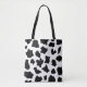 Padrão de pele de vaca branca e negra. Sacos de tote. Por toda a impressão. Ideia de presente para pessoas que amam animais de fazenda.