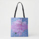 Bolsa Tote Pêmona Rosa Púrpura Floral Monograma Céu Azul