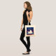 Yoga Cat Tote Bag White Gatinho com fundo roxo e azul Personalize com sua própria frase ou nome Yoga