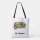 Featuring colorful school-themed graphics like a yellow bus, apple, and school supplies, this Tote Bags captures the energy of teaching.