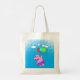 Custom tote bags with cute hippo flying in blue sky with balloons.