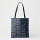 Padrão digital de paus roxas e triângulos verdes com zags de ziguezague vermelhos em um fundo preto. Uau, seus amigos com esta bolsa especial! Obrigados para ver as minhas designs.