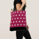Bolsa de mão com pontos pretos em fundo burgundy.
