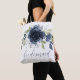 Tote Bag Gift for Bridesmaids - Esta bela sacola de tote é o presente perfeito para as suas damas de honra. Apresenta um buquê azul-marinho de aquarela floral com folhagem verde e pistas de brilho prateado. Tem a palavra "dama de honra" em um roteiro elegante. Você pode excluir o texto se quiser.