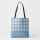 Bolsa Tote Powder Blue Gingham Monogram Custom Name