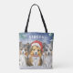 Esta bolsa de tote adorável apresenta 3 prateleiras aquáticas sentadas na neve. O filhote no centro está vestindo o chapéu de Papai noel. Você pode personalizar com um nome no topo da bolsa assim como na etiqueta do cachorro.