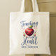 Os professores merecem um grande obrigado para você por tudo o que fazem. Com esta bolsa especial de tote você pode dizer obrigado com um presente memorável. Personalizar este Ensino é uma Obra de design do Coração com o nome do seu professor especial! A tipografia bonito rodeia uma maçã do coração e pequenas flores. Veja a coordenação de itens e nossos outros presentes de professores em nosso compro, Enchied Finch.