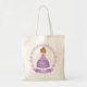 Um saco de tote de princesa roxa com uma borda floral. Personalize-o com o seu nome. Um favor de festa divertido para uma festa de aniversário de princesa de meninas. Outras cores disponíveis. Projetado para você pelo Blackberry Boulevard.