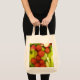 Esta bela sacola de tote mostra uma fotografia de uma mistura de ingredientes salados em um coentro. A fotografia saborosa inclui tomates, rabanetes, cebolas de primavera e alfaces. O design é mostrado em um saco de tota de mercearia orgânico, mas também está disponível em outros estilos e cores de bolsas.
