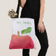 Professor Personalizado Professores de Maçã Vermelha de Cor Vermelha Na moda Tote Bag. Design em ambos os lados com nome personalizado em fonte verde divertida. Uma bela maçã aquarela no canto inferior de um saco com caule castanho e folha verde. O fundo branco torna as cores vermelha e verde pop. Um saco de tote divertido para os professores se carregares em volta da aula. Um obrigado de excelente para seu presente de Natal ou presente para seu professor favorito.