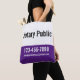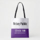 Uma bolsa de tote de negócios facilita a promoção do seu negócio notarial público enquanto você estiver em movimento. Você pode editar o texto para adicionar um nome comercial (se desejar), seu número de telefone e um endereço de e-mail. Todo o texto pode ser editado ou excluído. A metade superior do ímã é branca com texto preto. A parte inferior é roxo real com texto branco.