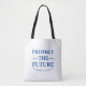 Um saco de ombros esportando a design que diz "Proteja o Futuro: Fique Com a Democracia" por expressar desejo por um futuro onde a liberdade esteja garantida. Você pode personalizar o conteúdo textual e a cor de seu gosto.