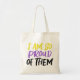 I am so proud of them tote bag written in yellow, white, purple, and black for nonbinary parents. Show your pride for your non-binary child with the non binary colors for a mom or dad.