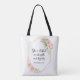 Carry faith with you! Spacious floral tote bag featuring Proverbs 31:25 — perfect for groceries, Bible studies, or daily errands.