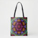 Bolsa Tote Psicodélico Mandala Flor Púrpura Laranja e Verde