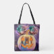 Saco de excelente para amantes de Halloween, amantes de horror, amantes roxos, amantes góticos, ou apenas amantes de sacos de tote fofos, vibrantes e festivos. O roxo nesta design é simplesmente lindo! A vibrante abóbora laranja e rosas fazem com que esta bolsa seja realmente pop. Este bolsa pode ser usado como um saco do dia a dia, saco de ioga, bolsa de comprada, bolsa de mercearia, ou para truque ou tratamento!