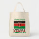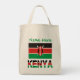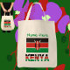 Saco mostrando a bandeira queniana com a palavra KENYA abaixo nas cores da bandeira. Acima, adicione seu nome, em letras verdes, para um toque ou presente personalizado. Design nos dois lados do saco. Excelente diversão para uma reunião de família.