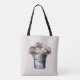 Bolsa Tote Ranunculus em Tin Pail Rustic Glam Rosa