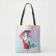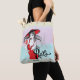 Viagem Paris Sketch Tote Bag com uma garota de vestido vermelho e a Torre Eiffel. Personalize com seu nome ou um nome de amigo.