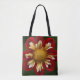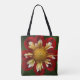 Sua escolha de bolsa de na moda ou de corpo cruzado com um impressão que mostra a foto de uma flor colorida, vermelha Collarette Dahlia, com pétalas brancas e internas sobre um fundo verde escuro. Um design floral impressionante! Selecione o estilo e o tamanho da sua bolsa.