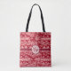 Um design de prédios e árvores, de aparência vintage, de jouy, de cor rosa sobre um fundo vermelho brilhante, vai adicionar uma cor brilhante nesta bolsa de tote. Bonita, elegante e design impressionante!