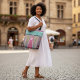 Bolsa Tote Resumo Listra Vertical Chevron Rosa Desbotada
