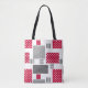 Bolsa Tote retalhamento de bolinhas vermelha de cinza sobre f