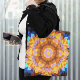 Bolsa Tote Retro Mandala Flor Laranja Azul e Amarelo
