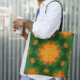 Bolsa Tote Retro Mandala Flor Verde e Laranja