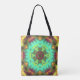 Bolsa Tote Retro Mandala Flor Verde Roxo e Laranja