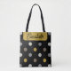 Bolsa Tote Retro Polka Dots Black Mustard Name Personalized