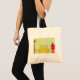 Um robô retrô parado ao lado de um carro amarelo. Este design parece realmente eficaz nesta Tote Bag