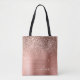 Bolsa de Livros Rosa Dourado e Rosa Bege com Brilho Falso e Brilho Gotejante Metalizado em Aço Inoxidável Elegante. Esta Bolsa de Livros pode ser personalizada para incluir sua inicial e primeiro nome e dada como presente de Natal, Aniversário de 16 anos, Chá de Noiva ou Casamento.