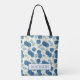 Tote Bag Tote Bag de marinho azul Presente perfeito para a sua festa de casamento - madrinha de casamento, damas de noiva, noiva e noiva e florista. monograma nome modelo overlay, padrão moderno de buquê de jardim de boho, bife de moda, elegância de vintage luxuosa, flutuação de cor d'água empoeirada, peões de rosa-rosa-pincel, azul clássico, azul marinho azul cor de rosa, paleta de cor macia, flores românticas tecínicas silvestres, flores silvestres sofisticadas,