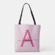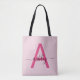 Bolsa Tote Rosa Vibrante Moderno Nome Monograma Menina Script