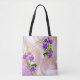 Bolsa Tote Rosas Violetas Purplish-Watercolor em Seda Rosa