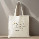 Sacola de presente de noivado personalizada para chá de panela de noiva com o nome da futura família em caligrafia moderna e elegante com design de corações dourados.
