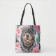 Bolsa Tote Rottweiler watercolor cão face rosa