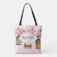 Esta bolsa de tote romântica e chica é para a Irmã do Groom. Saco de tota apresenta lanternas rústicas de aquarela e corais elegantes, pêssegos e rosa de ouro sobre fundo rosa de ouro. Fácil de personalizar com o nome da Irmã do Groom, e a cor de fundo também é personalizável. Esta bolsa é perfeita para o casamento romântico do celeiro ou chá de panela de casamento da fazenda. A coordenação dos artigos de casamento estão disponíveis na minha coleção de Casamentos Florais de Lanternas e Luzes Douradas na Rústica Rosa na minha loja Zazzle: