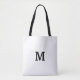 Preto e Saco Branco minimalistas.Adicione sua própria letra inicial personalizada. Festa perfeita favorece a ideia de presente para casamento chic, aniversário do rico, aniversário, solteira, noivado, fim de semana das meninas, chá de panela etc. Cor de fundo personalizável. Acessórios de tendências para mulheres e raparigas. Faça o seu para noiva, damas de noiva, madrinha de casamento, floristas, mãe da noiva, matrona da honra etc.