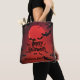 Esta bolsa de Halloween personalizada apresenta uma lua vermelha assustadora com morcegos voando, perfeita para doces ou travessuras ou como um acessório festivo para festas de Halloween. Personalize-o com seu nome para torná-lo exclusivamente seu. Ótimo para fãs de designs assustadores e góticos que desejam se destacar durante a temporada de Halloween.