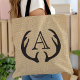 Saco de mão com monograma em burlap falso de aparência rústica e vintage. Personalize este saco de mão simples com seu próprio inicial ou nome. Presente perfeito para viagens de compras de supermercado.