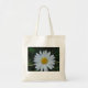 Uma flor grande, branqueado de margarida em Stäbchen claro antes de pano de fundo verde-negro é o motivo de este saco de tecido de lã de árvore.