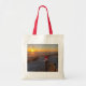 Saco de tote de tamanho perfeito pronto para ser preenchido quando você estiver fora e sobre fazer seu compre de Férias! Esta bolsa de tote tem uma bela foto do nascer do sol com um chapéu de Papai Noel e alças vermelhas faz dela um saco de compras ou presente perfeito para o feriado!