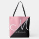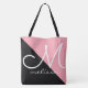 Bolsa Tote Saco de Toques Grande Preto e Rosa com Monograma d
