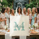 Saco de tota monograma de nome personalizado | Cor azul-turquesa/verde-lacrimogêneo. Design de logotipo Elegante com iniciais de letras monogramas. Boa ideia de presente para noiva e madrinhas nos casamentos.
