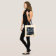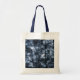 O saco de tote personalizado na moda apresenta um cianótipo com uma adorável mistura de círculos translúcidos de cor azul clara a azul escura. "Bokeh" é uma palavra japonesa que descreve um padrão agradável nas áreas fora do foco de uma fotografia. Os pontos são chamados de "círculos de confusão" na fotografia. 35 mm, fotografia a cores. Copyright © 2010 Claire E. Skinner. Todos os direitos reservados.