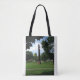 Aprecie esta imagem de um dia ensolarado no parque quando você levar artigos neste saco. O verso tem o logotipo de VerCarolina a ajudar a apoiar VerCarolina.