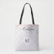 Nossa bolsa de monograma personalizada é adornada com uma estampa geométrica de pêssego e zigue-zague e moldura branca para sua inicial. Personalize com seu nome e inicial. Veja nossa linha completa de produtos em nossa loja Zazzle.